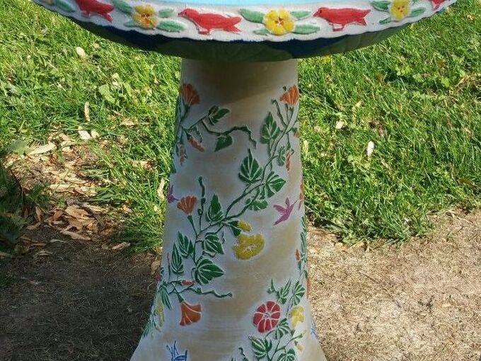 How I Painted A Cement Birdbath Bird Bath Concrete Bird Bath Painting Concrete